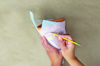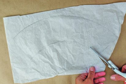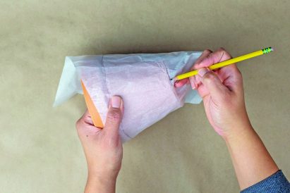 - Carefully remove the tape and tissue paper from the pot. Cut out the template you just traced from the tissue paper.