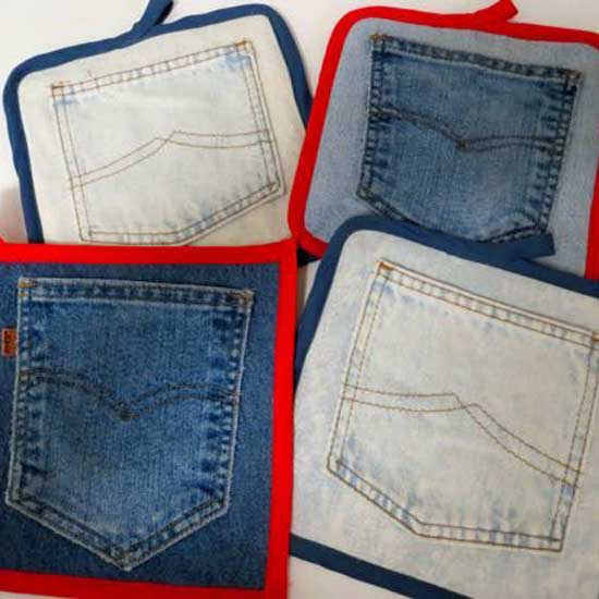 Two weeks before Christmas, I dug out a few pairs of worn-out blue jeans from the attic that I have been saving for a much bigger project. Only this time, I was going to make hot pads. I had seen them on the web, and thought them very cute with the pocket still attached to stick your hand in. I’m going to show you the finished project right off so you can determine if you want to continue reading and possibly make some yourself.