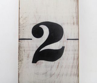 - Using the printouts of the numbers, do a simple pencil transfer. To do this, rub pencil all over the back of each number, and then carefully tape the printout, front-side up, onto the arrow where you want them placed. Then, trace over each number with the pencil, pressing firmly. When you remove the paper printout, you’ll see a faint pencil outline of the number. NOTE: Alternatively, you can either draw the numbers freehand, or you can use stencils to transfer them onto the wood.