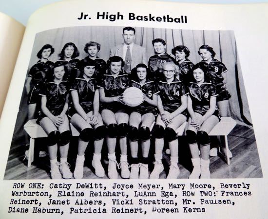 Then came a big surprise. Actually, a shock. First two, and eventually five of us, were asked to stay after school to practice with the high school girls. You know that our school was desperately small in numbers for that to happen. My friend, Luanne, was better than I, and didn’t seem as scared to be with the older girls. I tried to fake it, but I was petrified. I realize, now, that the coach and superintendent watched us, thought we might have potential, and the sooner we started the better.